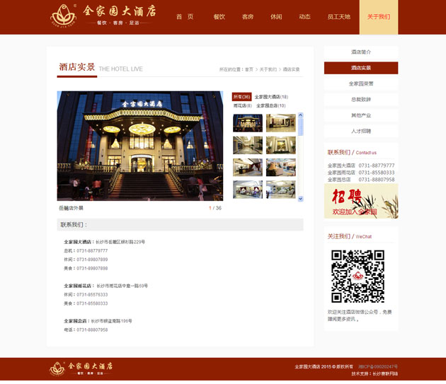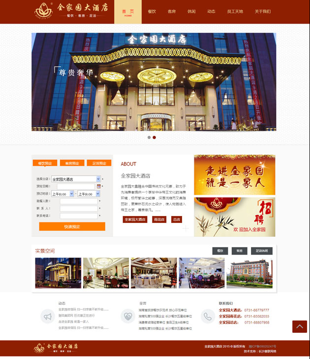 全家園大酒店按五星級標準建造的集客房、餐飲、康樂為一體的綜合型高端商務精品酒店 。網(wǎng)站上不僅展示了全家園大酒店,還展示了全家園雨花店、老店,及全家園實業(yè)旗下的四一農(nóng)業(yè)、濱江會所等??蓪崿F(xiàn)在線的餐飲預定、客房預定、足浴預定,及行政管理中的人才招聘等。